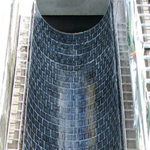 Keskin uçlu ve sert malzemelerin pnömatik ve mekanik naklinde, malzemenin geçtiği, aktığı ve döküldüğü yerlerdeki aşınmaların önüne geçmek için, bu yüzeyler bazalt plakalar ile kaplanır.
